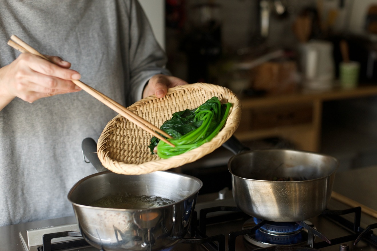 茎を先に30秒茹でた後、葉を入れてさらに30秒ほど茹でると、シャキッとした食感が残ります。見た目も鮮やかに仕上がるため、おひたしや和え物など幅広い料理に活用しやすいのが特徴です。しっかりした歯ごたえが好きな方は、この茹で時間を試してみてください。