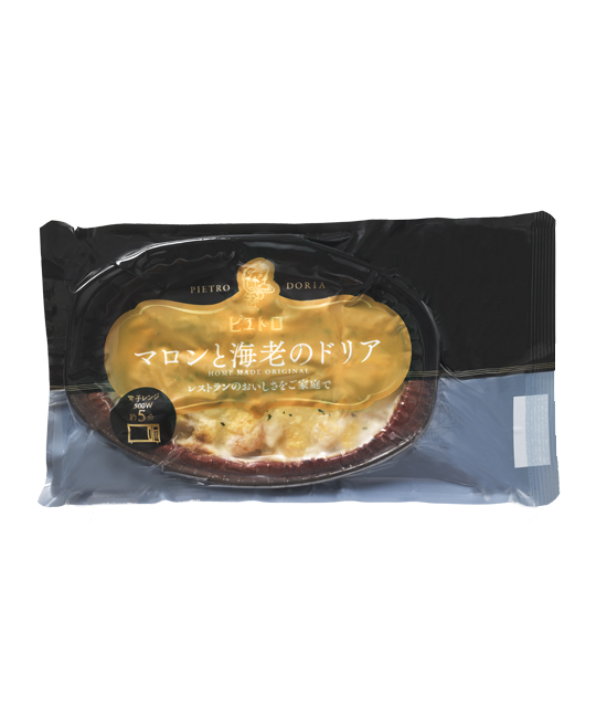 大粒の栗を使用した、栗の優しい甘さが口の中に広がるドリア。ソースはピエトロこだわりの自家製グラタンソースを使用しています。ほくほく食感を楽しめるよう、栗はまるごとトッピング。見た目からも具材感をお楽しみいただけるドリアに仕上げました。ピエトロレストランでも人気の「マロンと海老のドリア」をぜひご家庭でお楽しみください!