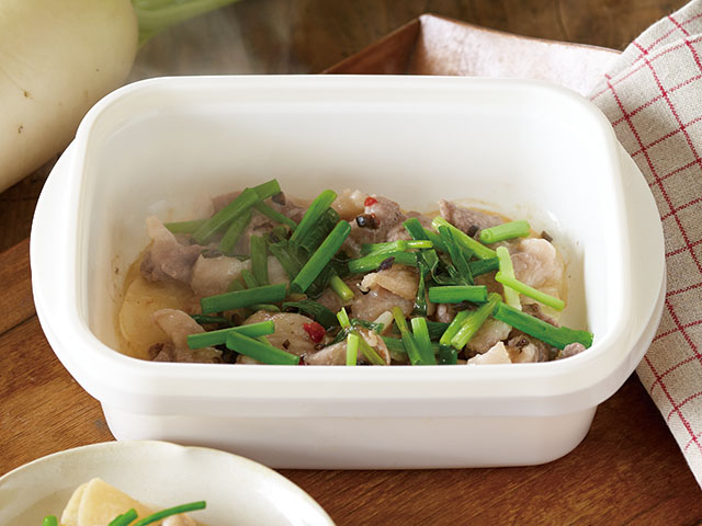 大根、にんじんは細切りにし、塩もみをして5分ほどおき水気を切る。 |