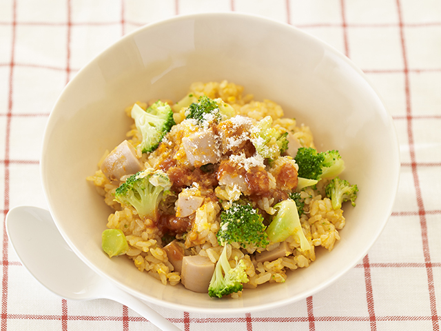 炊けたら鶏肉を取り出し、残りの人参、小口切りにしたいんげんを加え10分蒸らす。ごはんを皿に盛り、カットした鶏肉をのせ②のソースをかけて出来上がり! |