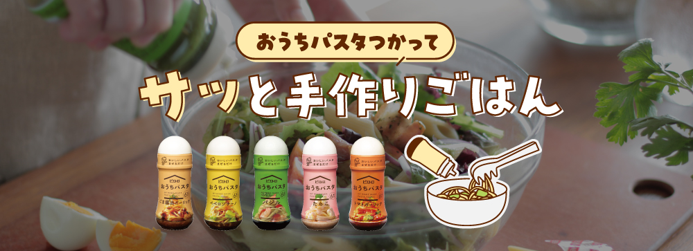 使う食材 サラダマカロニ(早茹で1分30秒タイプ)、水(マカロニ用)、ブロッコリー、水(ブロッコリー用)、ツナ(油漬け)、コーン、粗びき黒胡椒、粉チーズ、おうちパスタ トマトガーリック レシピ詳細はこちら