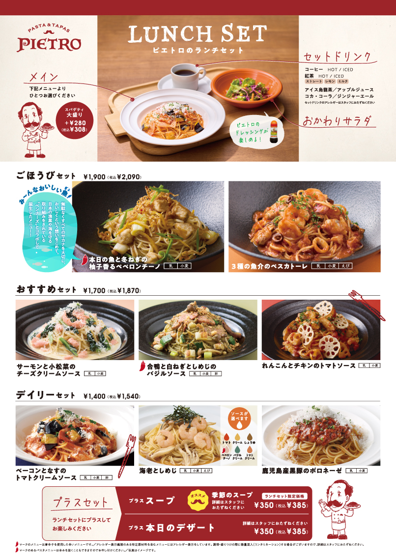 PASTA & TAPAS PIETRO 池袋店のランチタイム
