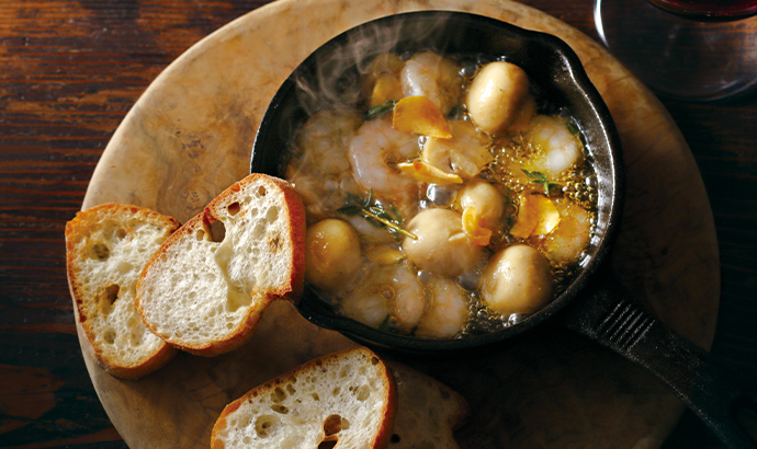 海老とマッシュルームのアヒージョ