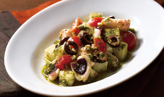 たことポテトのバジルソース